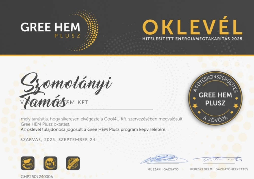 Abból a célból, hogy minél több végfelhasználóhoz eljusson az EKR rendszerben elszámolható energiamegtakarítás lehetősége és az abból származó előny, létrehoztuk a Gree Hem Plusz programot amibe csatlakozott Cégünk a Viva Vill System Kft , amelynek keretében a végfelhasználó, amennyiben részt vesz energetikai felújításban, pénzügyi támogatásban részesülhet Gree klímaberendezés vásárlása esetén.