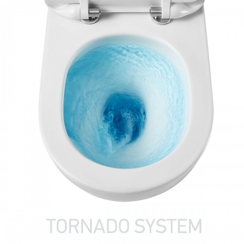 A Tornado Ultracsendes WC szabadalmaztatott öblítési technológiával van felszerelve, amelynek erőteljes spirális örvénylő víze halkan áramlik WCcsészébe, miközben rendkívül hatékonyan távolítja el a szennyeződéseket.Víztakarékos megoldás, 4,5 litert vizet igényel a nagy öblítéshez, és 3 litert