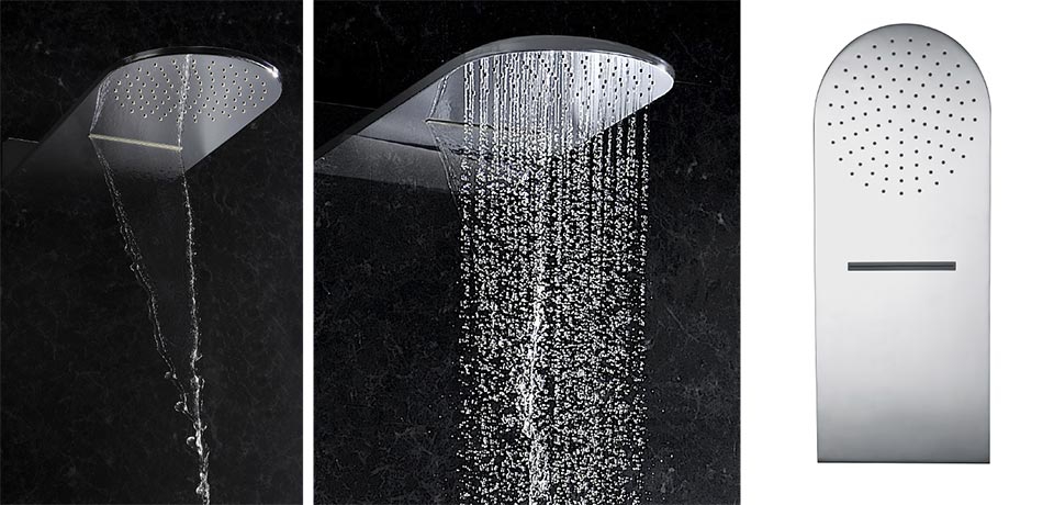 Kétfunkciós kivitel: esőztetővel (Ø20 cm) és vízeséssel