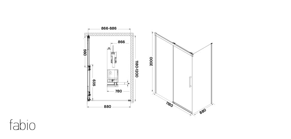 Cikkszám: WC00401Méret: 1200x900x2000 (mm)Termék: Fabio zuhanykabin