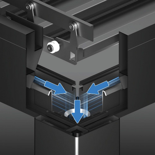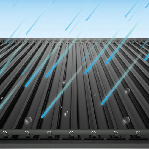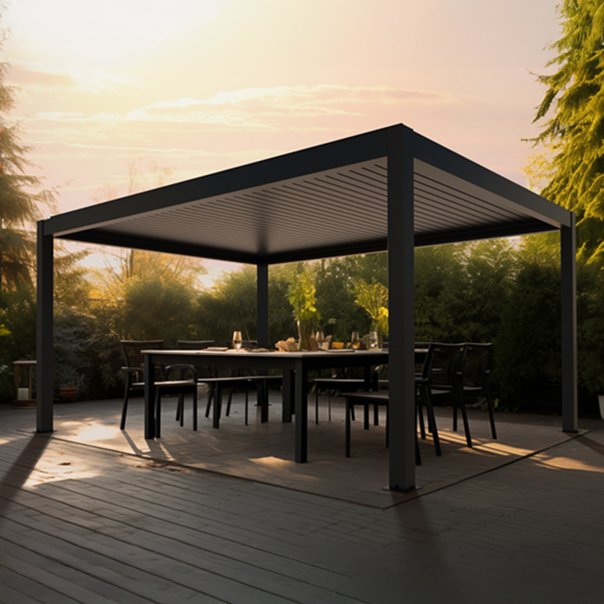 A tetőszerkezeten elhelyezett motoros, forgatható alumínium lamellák helyzetét könnyedén úgy változtathatjuk, hogy azok visszaverjék az égető napsugarakat, szűrt napfényt engedjenek át, teljes védelmet nyújtsanak az eső és havazás ellen, vagy akár zavartalan szellőzést biztosítsanak a pergola alatti levegő felmelegedése ellen.