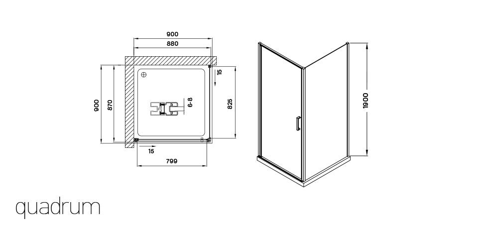 Cikkszám: WC00482Méret: 900x900x1900 (mm)Termék: Quadrum zuhanykabin