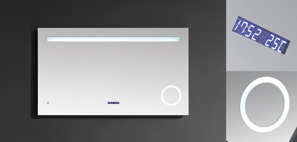 Természetesen prémium minőség jegyében elláttuk bőven kényelmi funkciókkal ezt a tükröt, úgy mint az óra-és hőmérséklet kijelzés, páramentesítő funkció, vagy a háromszorosan nagyító tükörbetét.
