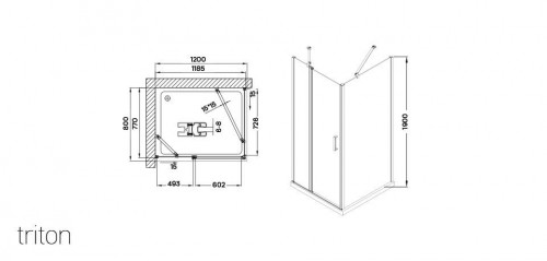 Cikkszám: WC00479Méret: 1200x800x1900 (mm)Termék: Triton zuhanykabin