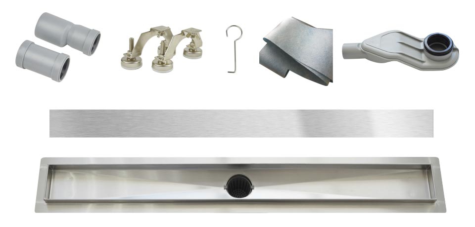 W-Drain prémium rozsdamentes acél zuhanyfolyóka szett, Flat mintázatú ráccsal.