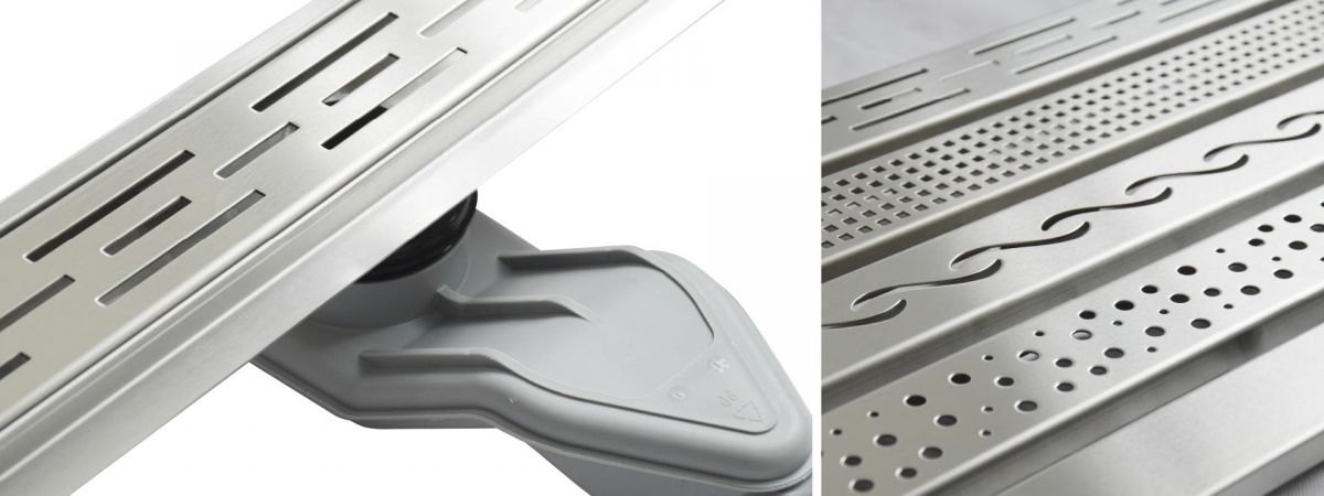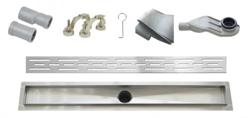 W-Drain prémium rozsdamentes acél zuhanyfolyóka szett, Linear mintázatú ráccsal.