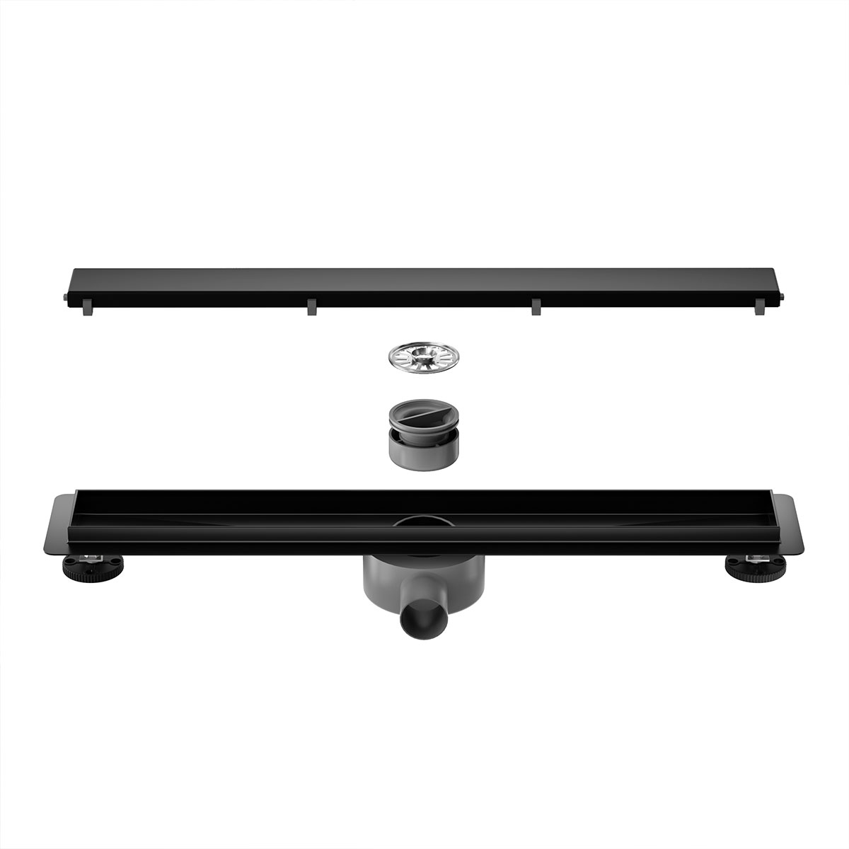 W-Drain Onyx prémium Matt fekete zuhanyfolyóka szett, Flat vagy burkolható fedéssel.