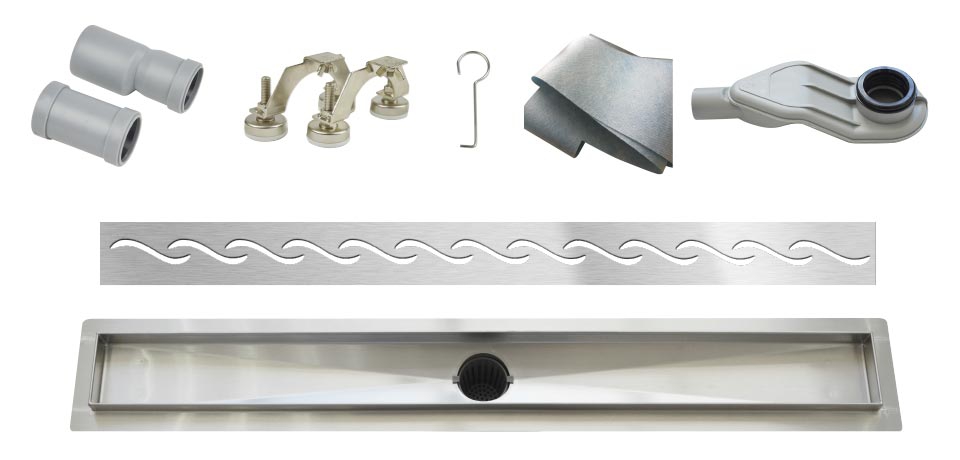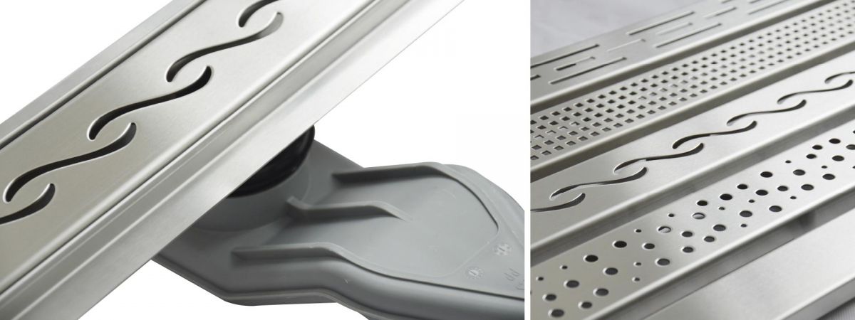 W-Drain prémium rozsdamentes acél zuhanyfolyóka szett, Wavy mintázatú ráccsal.